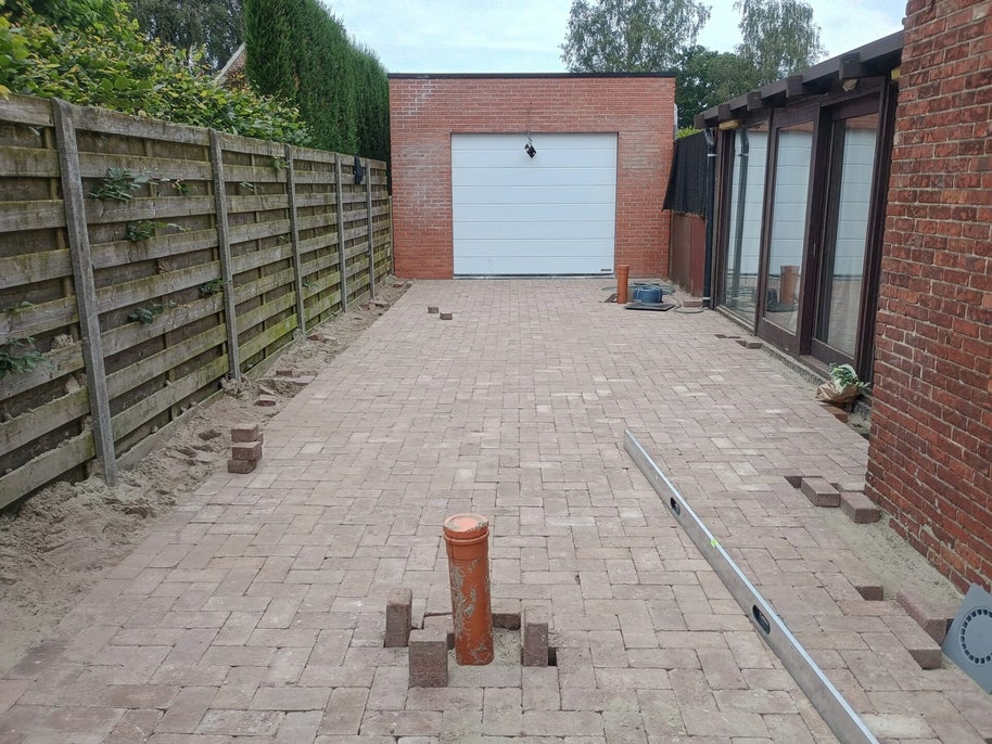 Aanleg oprit met hergebruik van klinkers in Belgie.